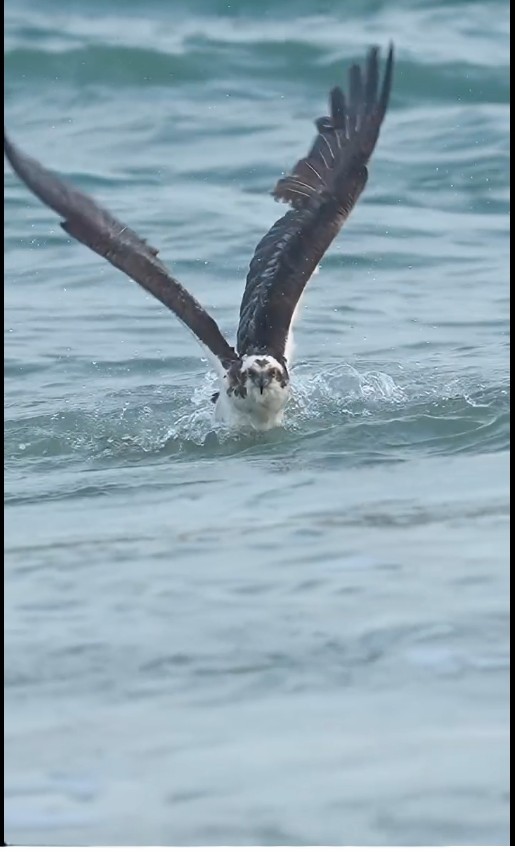 물수리가 물고기를 쫒아 물속 깊이 잠수 했다가